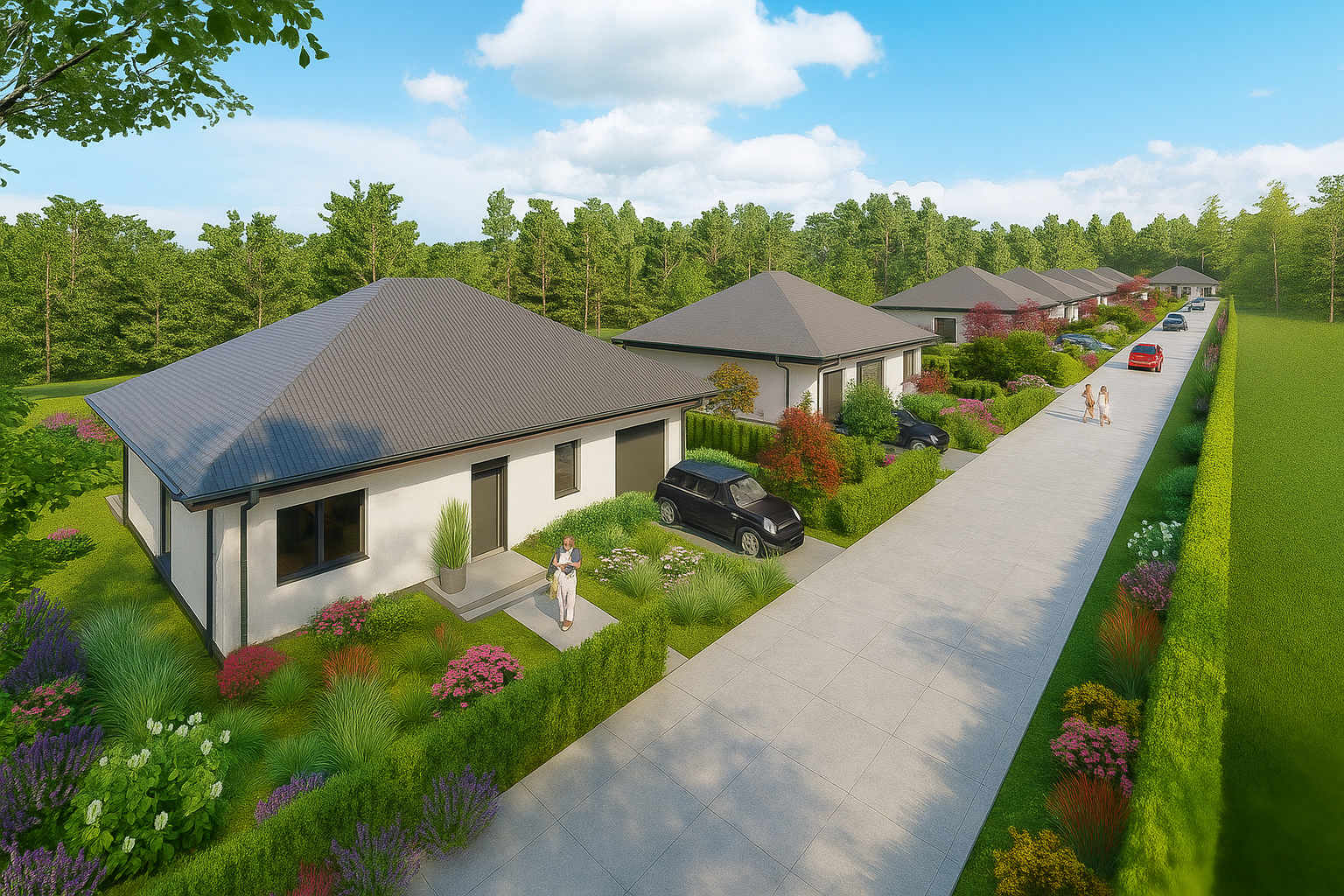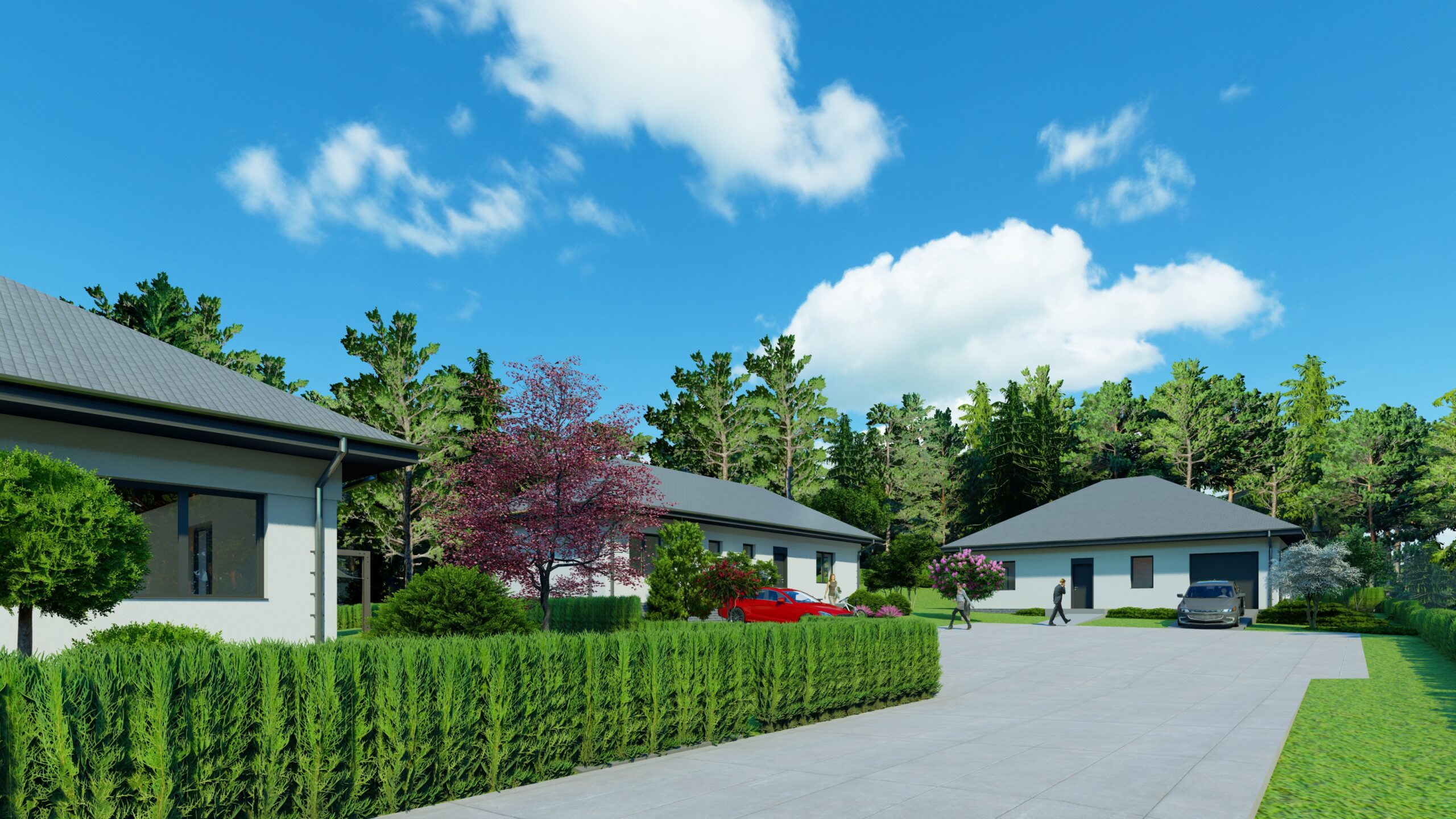 Leśne Zacisze to urokliwe osiedle parterowych domów jednorodzinnych, położone na przedmieściach Szczecina, bezpośrednio przy lesie w miejscowości Buk. To spokojne i bezpieczne miejsce, idealne dla rodziny poszukującej komfortu i harmonii z naturą. Osiedle charakteryzuje się wysokim standardem wykonania, nowoczesnym designem i funkcjonalnym układem domów, które można dostosować do indywidualnych potrzeb. W ofercie znajdują się przestronne domy o powierzchni od 88 do 118 m², z trzema lub czterema sypialniami, dużym salonem z aneksem kuchennym, spiżarnią, łazienką, WC, pomieszczeniami gospodarczymi oraz garażem.
